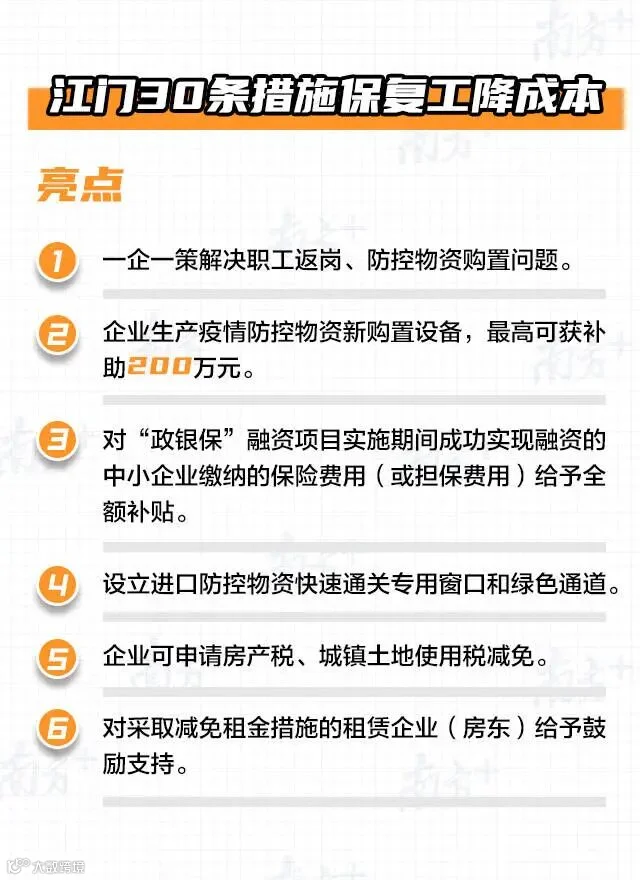 江门30条措施保复工降成本