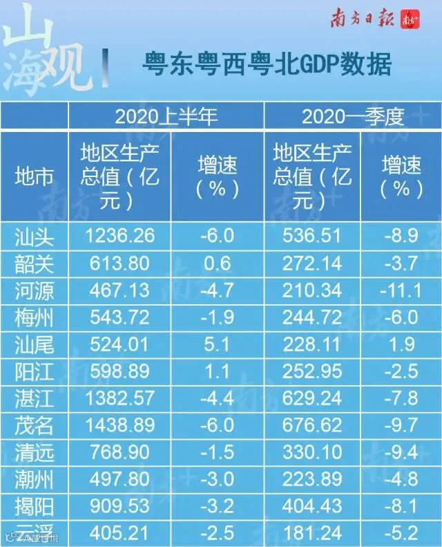 截至7月31日,粤东粤西粤北12市上半年经济数据全部出炉。数据显示,