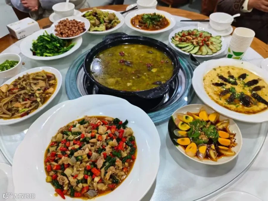 劳作后的农家午餐别具风味:砂锅里羊肚菌鸡汤泛着金黄油花,菌香与土鸡鲜味交融升腾;羊肚菌蒸蛋滑嫩如脂,点缀翠绿葱花;蕨粑炒腊肉焦香弹牙,山野气息扑面而来。女职工们围坐木桌,就着春风品佳肴。