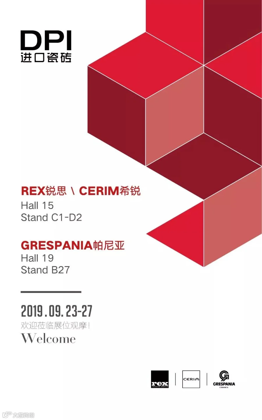 欢迎莅临REX/CERIM品牌总部FLORIM展馆(15号展厅C1-D2 ),西班牙GRESPANIA 瓷砖馆(19号展厅B27)参观!