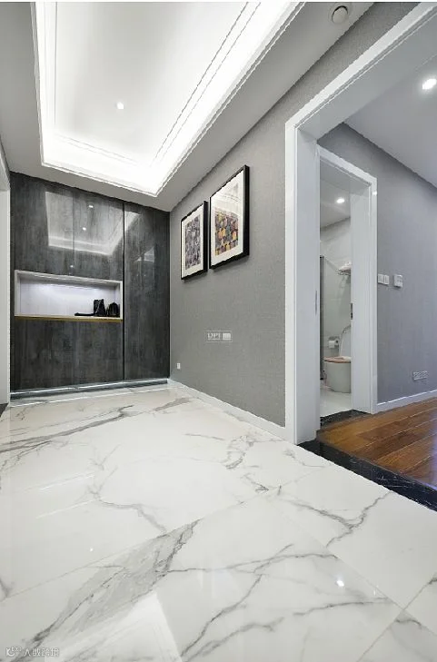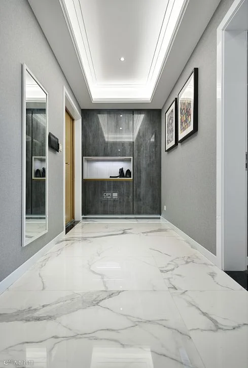 入户门厅采用了极具对比的手法,黑白灰三色的映衬,经典不变的永恒配色。