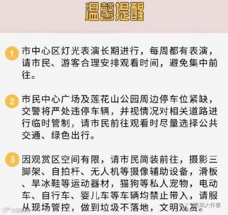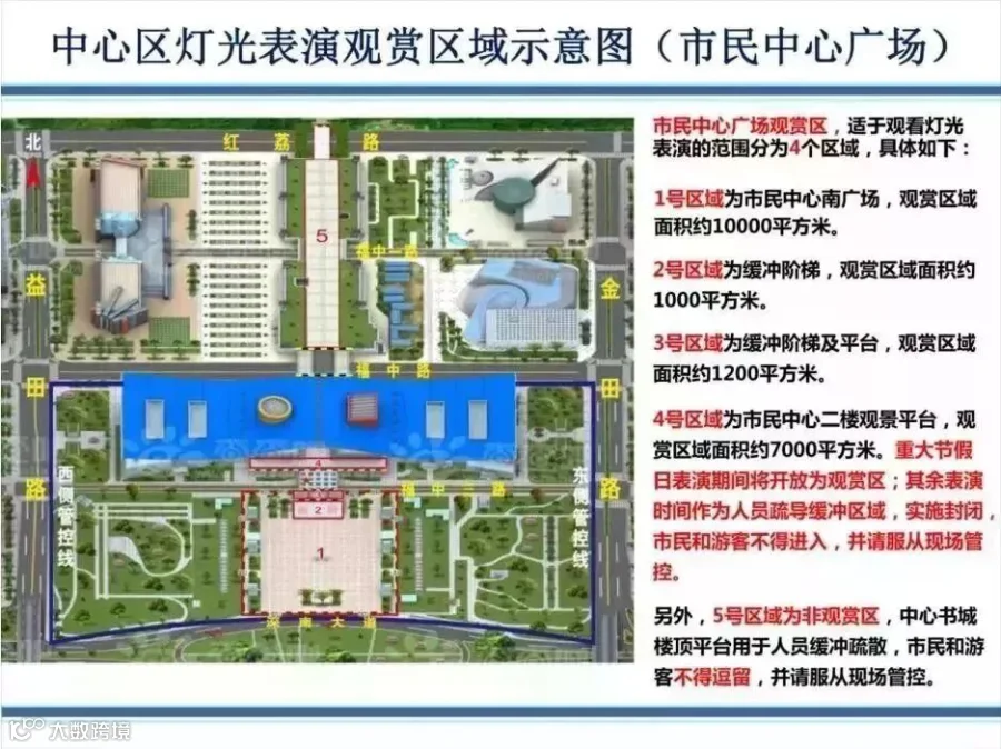 注意:最后一场灯光秀的播放时间由原来的21:30调整为21:00,计划前往现场的市民要注意时间,以免去晚了扑空。