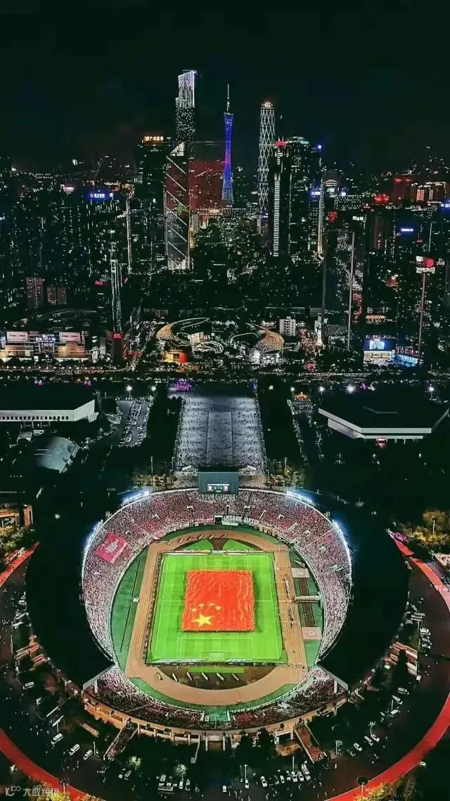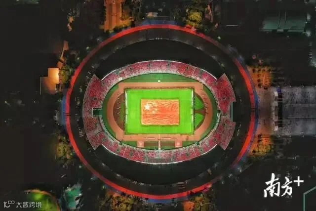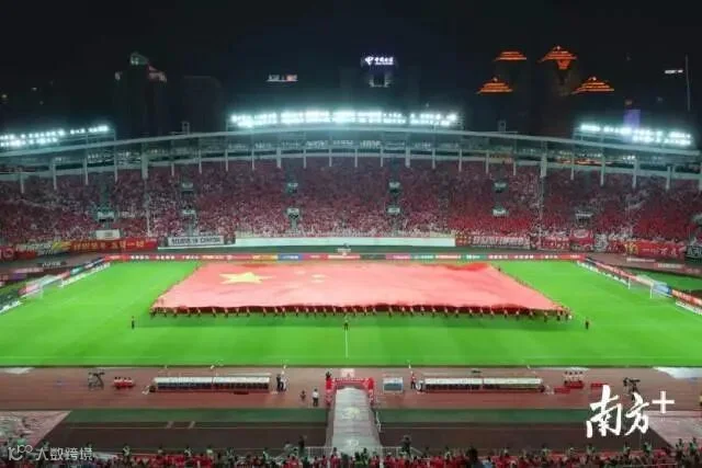 燃爆!昨晚广州天河体育中心,数万球迷与3300㎡巨幅国旗同框