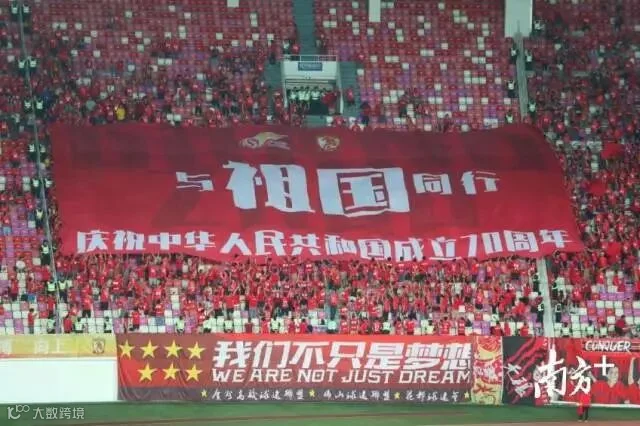 此时的广州恒大主场,爱国热情凝聚成滚滚热浪,表达对祖国的爱,并掀起“同框”热潮——从老人到儿童,来自全国的球迷朋友们与国旗同框,用实际行动践行爱国情怀,由衷地祝愿祖国越来越好,繁荣昌盛,献礼新中国70周年华诞。
