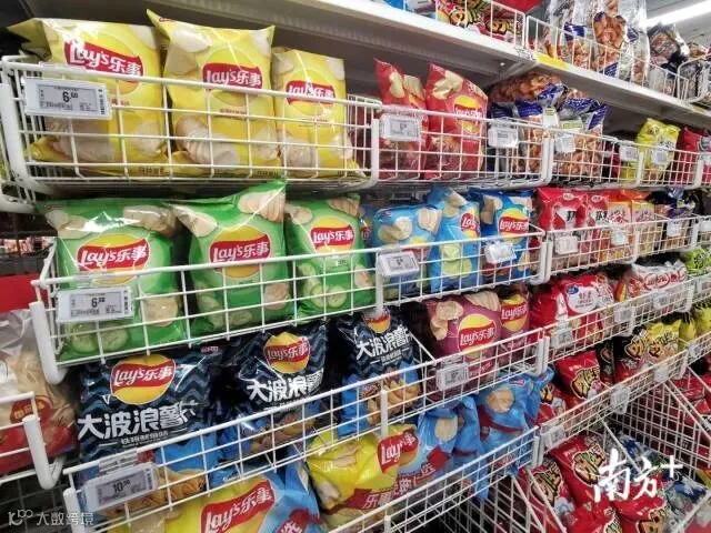 广州市天河区某超市,薯片区货架上摆满乐事薯片。南方日报记者 肖雄 摄
