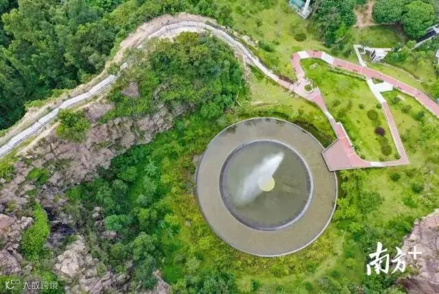 金字山公园,废弃采石场如今变身为“金山飞泉”景点,喷泉最高可喷25米。