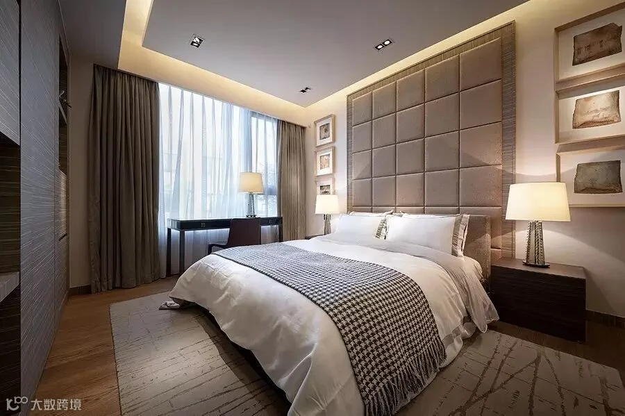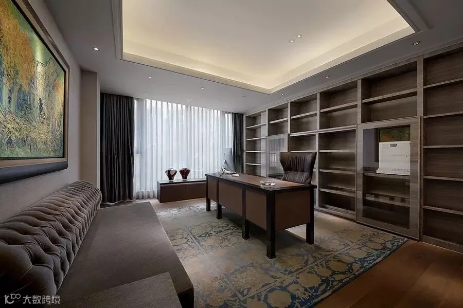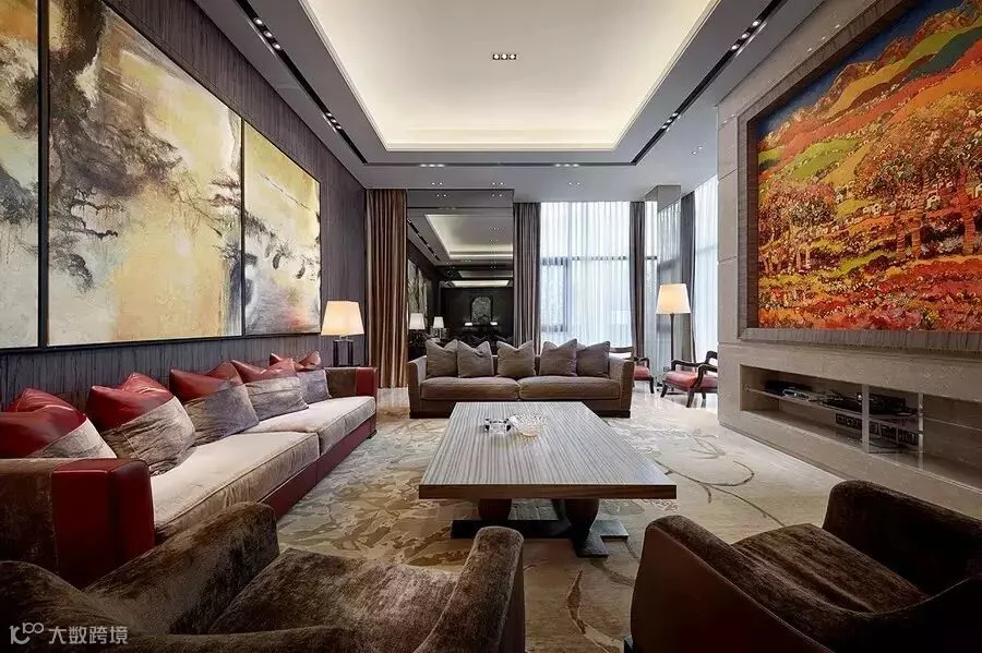 除了设计质感之外,品味和情调也是设计师与业主的共同诉求点。在三楼转角有一间高五米,约六十平方的茶室。这里都采用了高品质的家私,哪怕是一个小小的茶具同样来自欧洲的Armani。两栋别墅的艺术挂画大约有上百件,几乎都出自于法国当代油画家的作品。郑树芬先生善于捕捉与体会生活中的艺术,不是被“一些”或“所有”,甚至“很多”而吸引,而是挑选出最好、最精巧的生活之美。这个,就是他对美的诠释,比如家庭厅一幅色彩鲜艳的油画,表达了主人翁对美好生活的期待。而当你关上窗帘,卧室成为最温暖的光影世界。