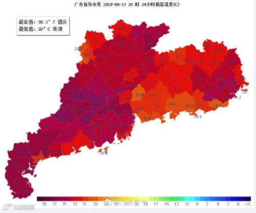 至下午4点,今日最高气温,德庆36.2℃夺冠。