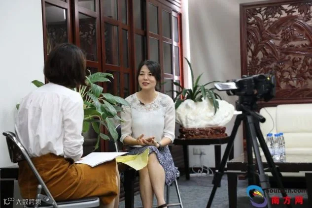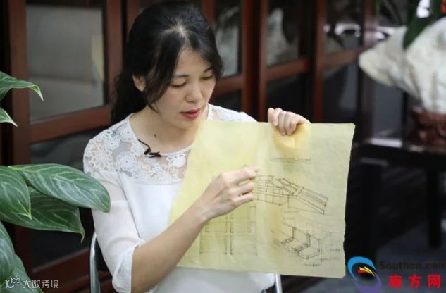 冯颖慧在向记者讲解东人工岛设计手稿草图。(摄影:张传永)