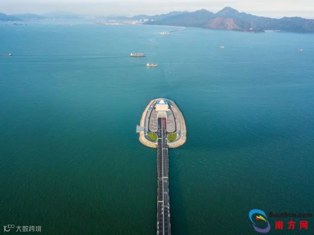 东西人工岛中间隔着6.7公里的海底隧道,通行万吨巨轮。人工岛采用世界首创深插式钢圆筒快速成岛技术,由120个巨型钢筒组成。每个圆筒直径22.5米,高度50多米。(摄影:张由琼)