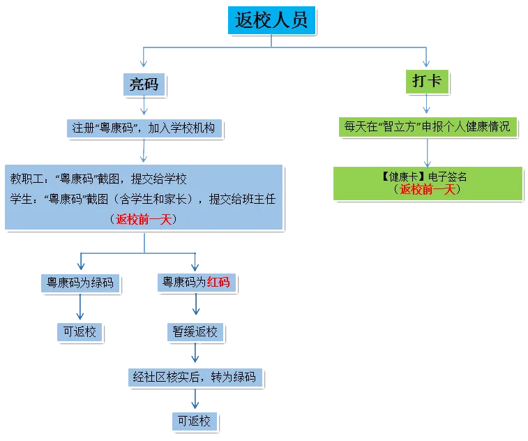 *若学生或监(照)护人“粤康码”其中一方为红码,学生暂缓返校。经社区核实情况,转绿码后方可返校。