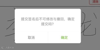 3. 预览健康卡确认无误后,在上一步的菜单点击【电子签名】,在“健康卡签名须知”提示点击【已预览,开始签名】即可进入签名页面,用手指在手机屏幕上签下申报人姓名后点击【提交签名】后点击【确定】。