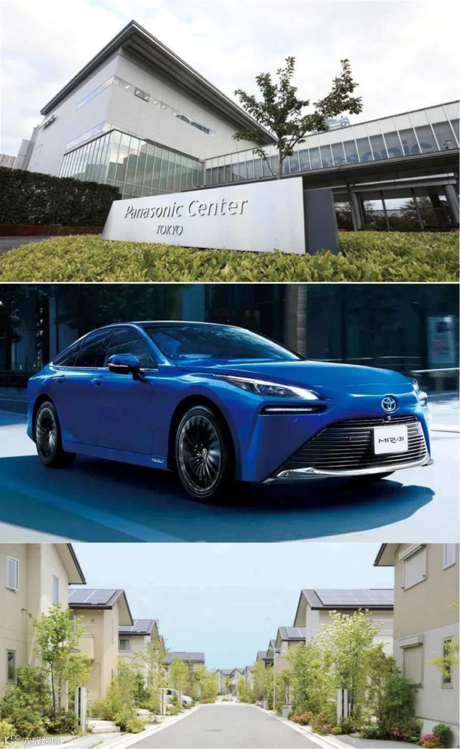 由上至下分别为:松下东京中心、丰田氢能源车“未来(MIRAI)”二代、大和房屋开发日本首个净零能源住宅“智能生态城晴美台”
