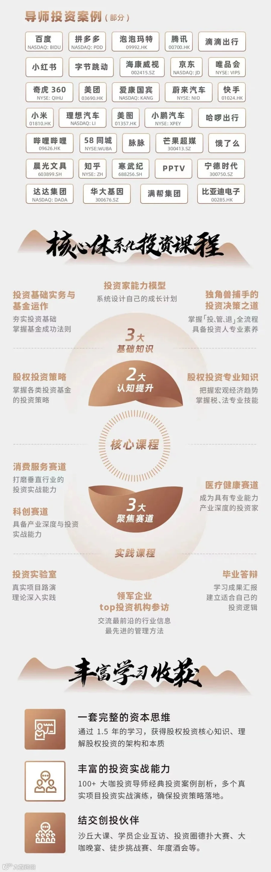 沙丘投研院作为清科旗下高端股权投资商学院,汇聚 20 年来积累的强大人脉资源,致力于培养拥有全球视野、擅于捕捉中国市场机会、具有超强实战经验和社会责任感的企业家和投资人。