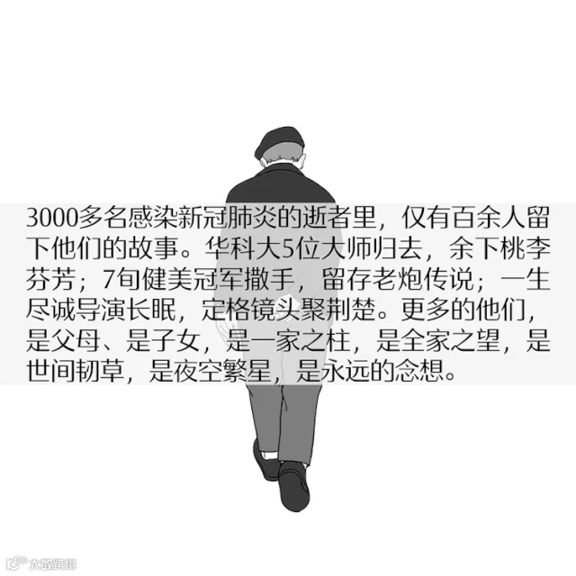 疫情突如其来,截至2020年4月3日,我国因感染新冠肺而离世者已有3331名,有耄耋老者,有风华青年,有医务人员,有学术大师,以及无法被记录的“无名者”。同时,据南都大数据研究院不完全统计,还有近200人倒在抗击疫情的最前线,他们中,有普通的村医、老道的民警、敬业的基层、热诚的志愿者,他们最后的身影留在了工作岗位上。