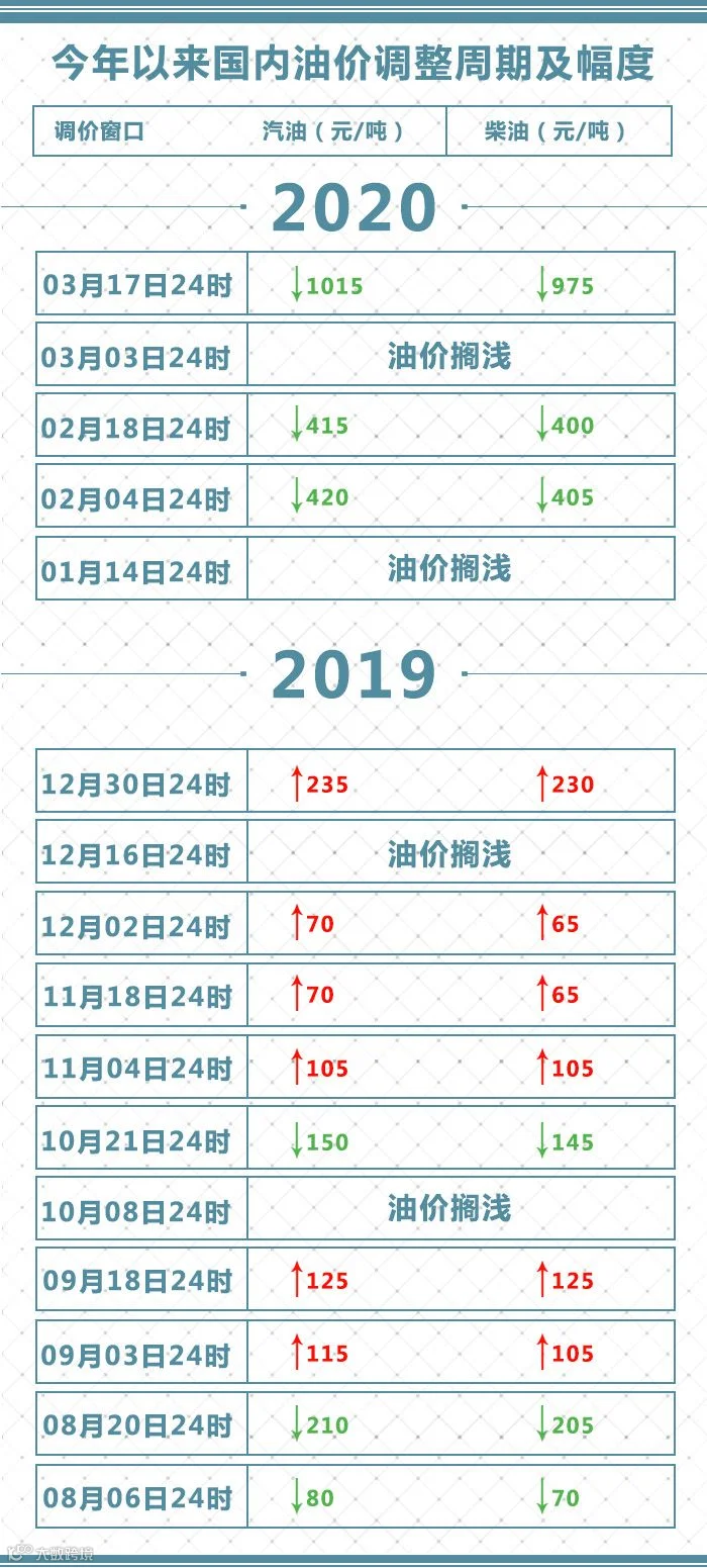 本次调价是2020年国内成品油调价窗口出现的第三次下调。