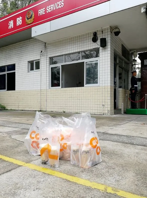 日前,在东莞凤岗消防大队岗亭,一位外卖小哥说:“有一个匿名市民在网上下了订单,让我把这15杯奶茶送到消防大队,送给最可爱的消防员。”