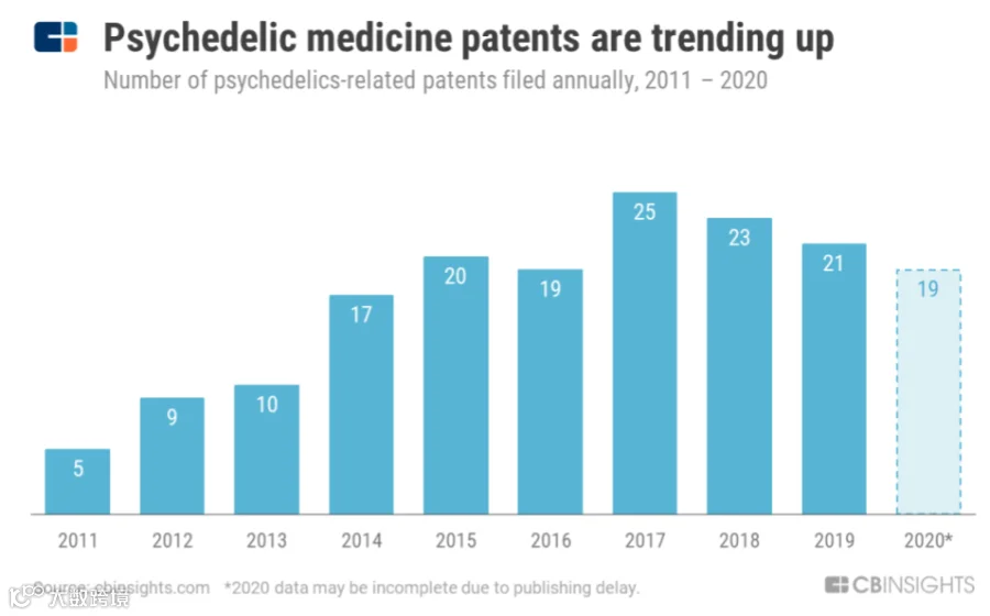 图 | 迷幻药物领域专利数量(来源:CB Insights)