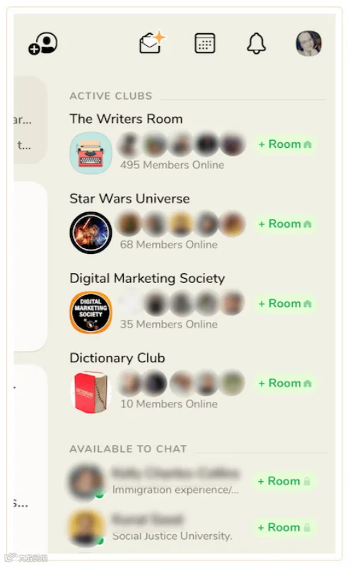 以 Clubhouse 为例,这款邀请制应用允许用户在特定主题的“房间”内语音聊天。用户可以参加书友会、政治讨论、主持说唱比赛等等,所有内容均来自于用户。