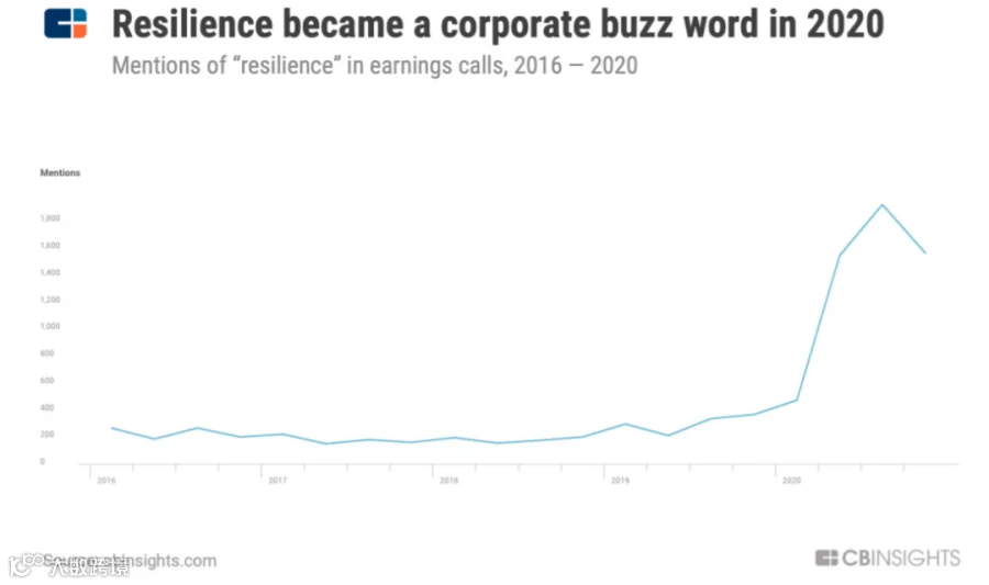 图 | “韧性”(resilience)成为了 2020 年电话会议中的流行词(来源:CB Insights)