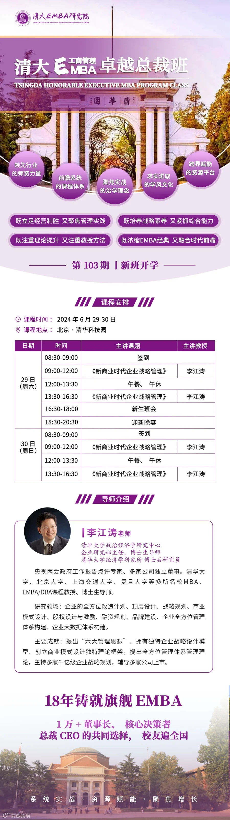 欢迎加入:清大·工商管理(EMBA)总裁高级研修班