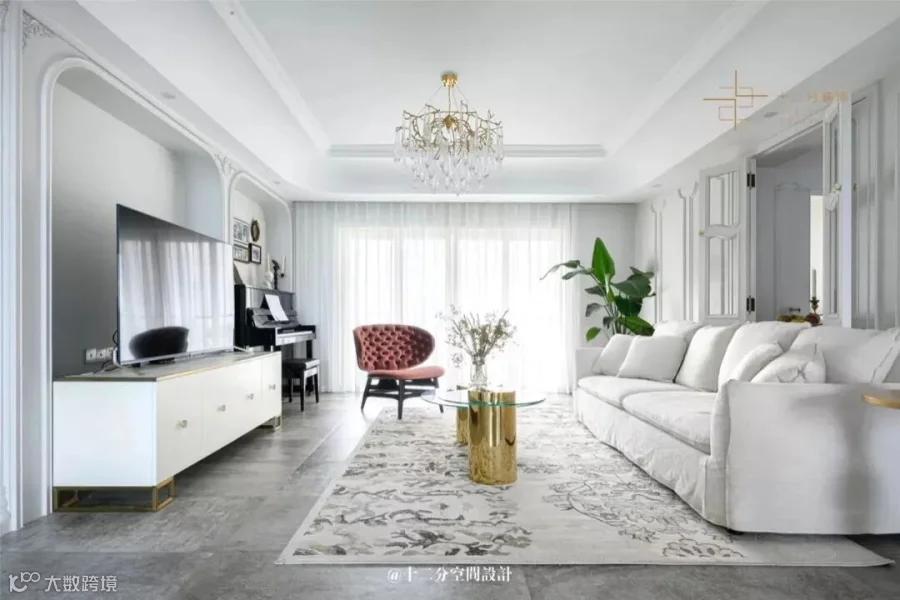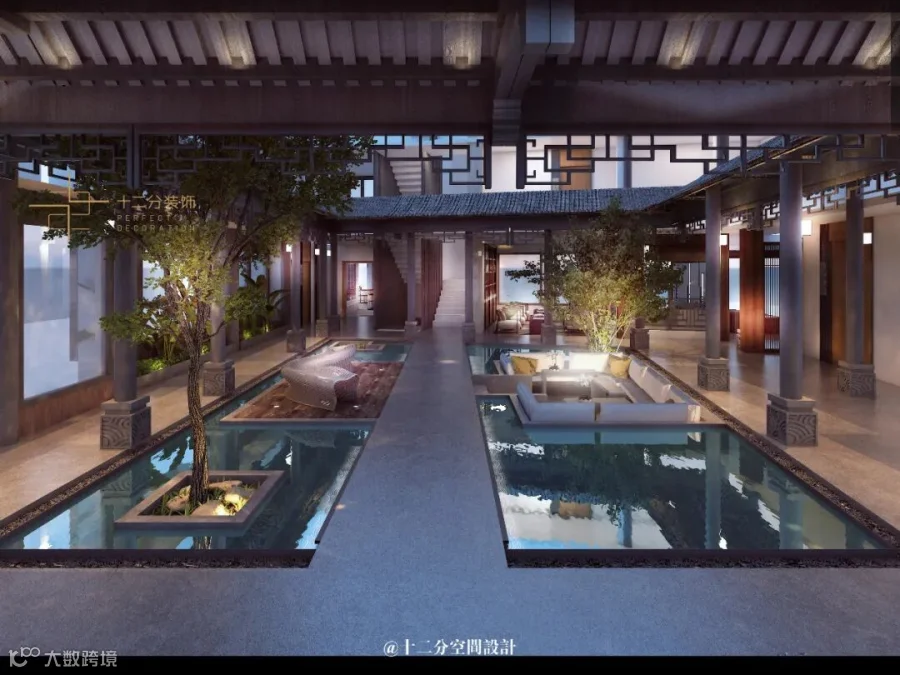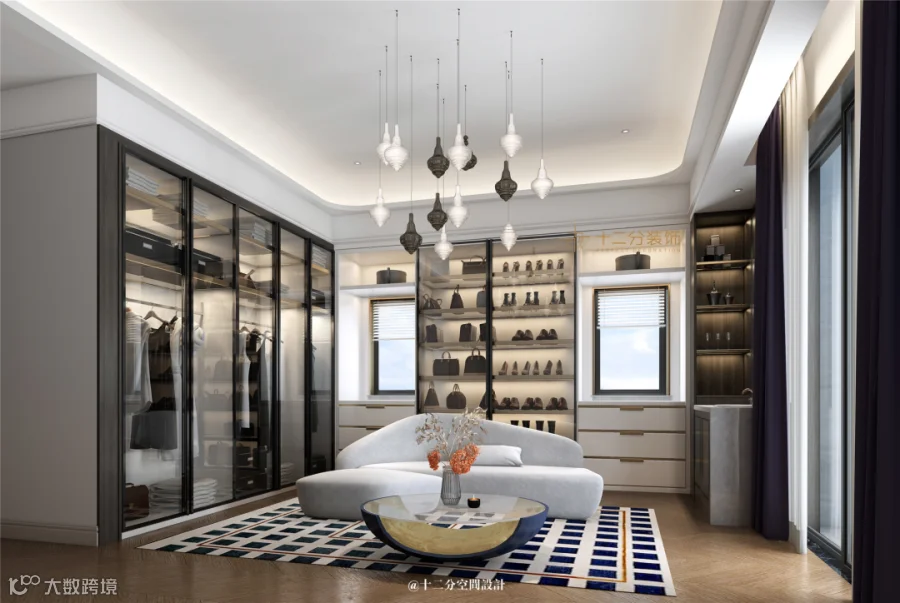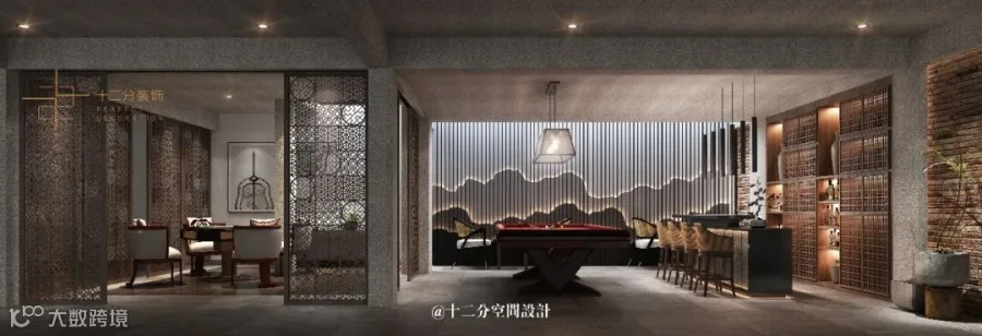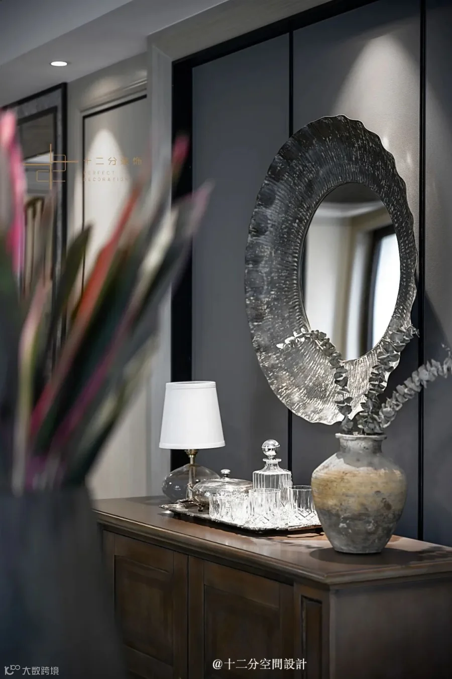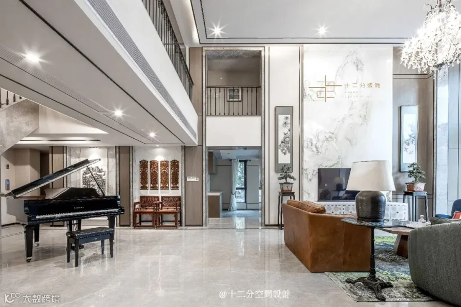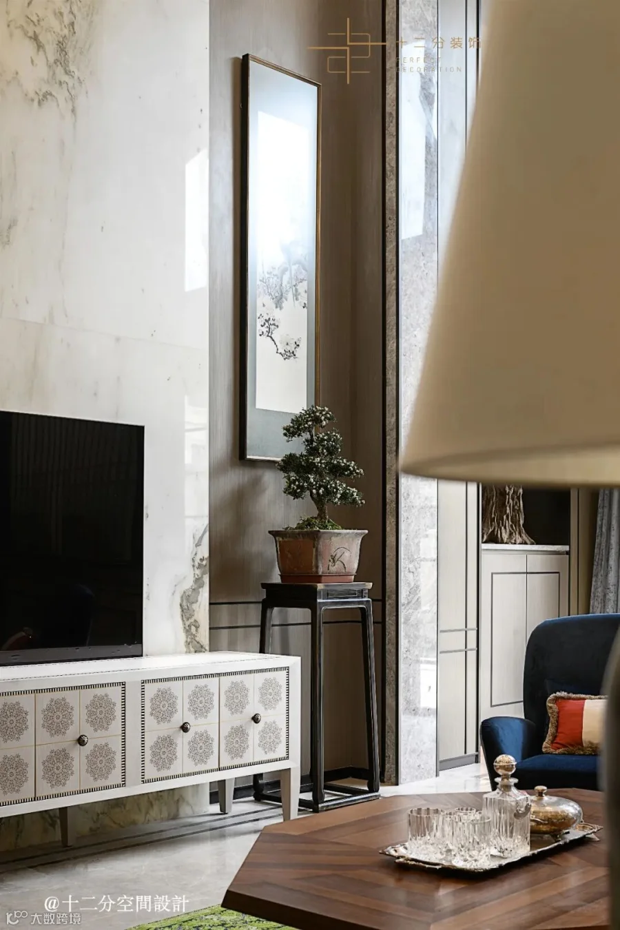 1000平方米的大宅,从阳光阔门廊入户,把最好景观面并入品质功能区域,实现室内室外互动空间;线描意境勾勒现代中式韵味,西情东韵巧妙融合,铺陈出既有大宅气质又不乏居家温情的高阶风范。