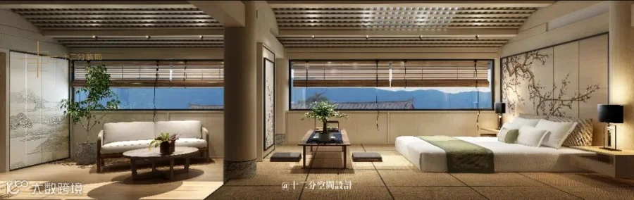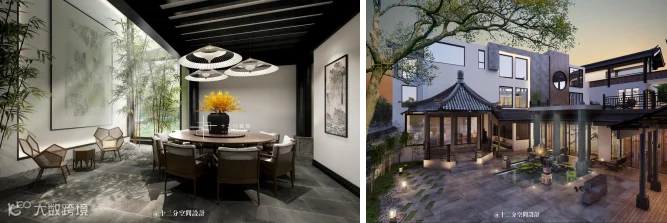 颐比益,业主根据易经三个卦相所命名,颐养身心之所;以亲近互助、得以诚信而立,聚而繁茂之地,围绕自然禅意意境。从外建筑绿意围绕开始,辟一方静养天地,于入户雨落挂檐、静水流深、绕行一方山水方入室内。木与石呈于自然留白之间,迂回而豁然开朗。一步一景、或坐或行、或憩或醒、得天地灵气、享舒适颐养。