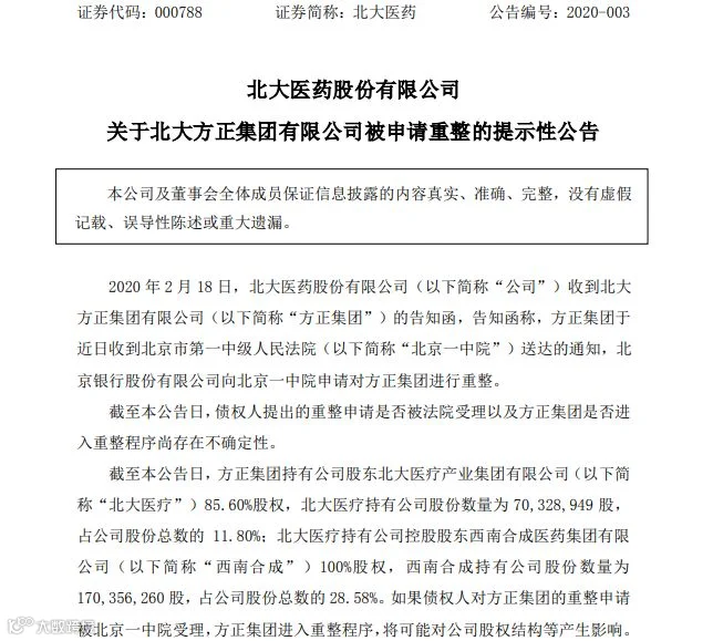 这总资产超3000亿元的校企,正面临着沉重的债务负担,资金危机随去年末的第一比债务违约引爆。方正集团有望迎来重整,意味着其或将通过重整程序走出困境。