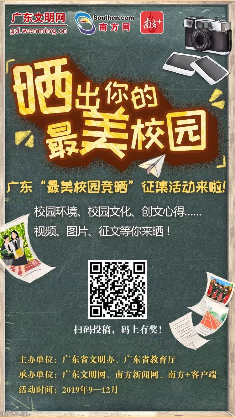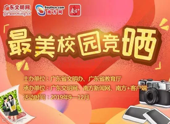 今年是新中国成立70周年,广东省文明办、广东省教育厅通过组织发动各大中小学校,结合校园师生文明修身实践养成,围绕文明校园创建工作广泛开展“最美校园竞晒”活动,发动各校园师生广泛开展“拍”校园、“晒”校园、“说”校园、“展”校园等活动,打响校园文化品牌。