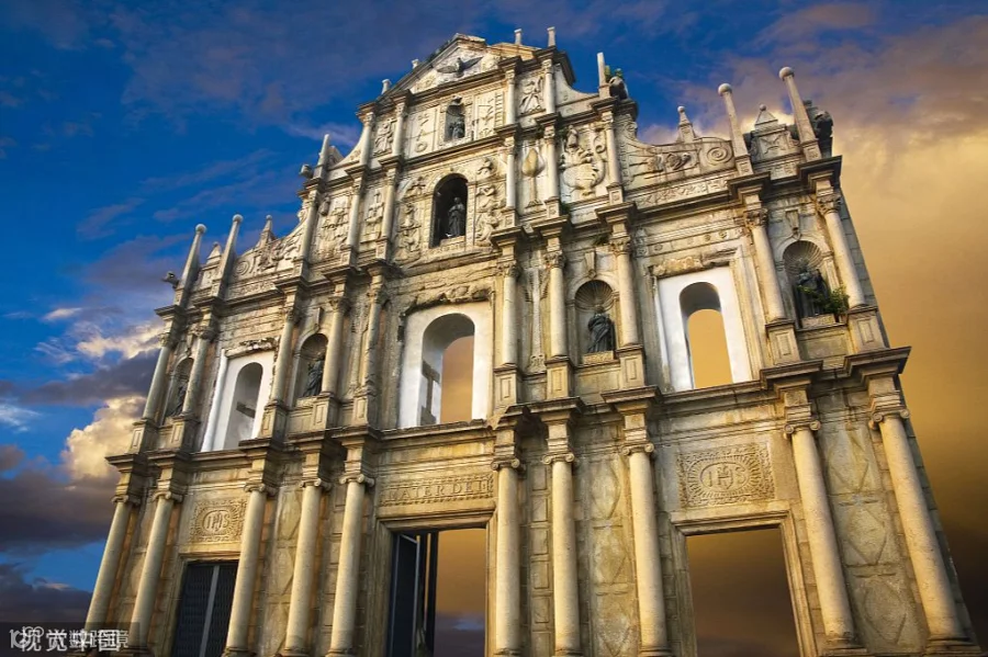 大三巴牌坊是最具代表性的"澳门八景"之一,位于炮台山下,左临澳门博物馆和大炮台名胜,为天主之母教堂(即圣保禄教堂)的前壁遗址,曾浴火重生。建筑糅合了欧洲文艺复兴时期与东方建筑的风格而成,体现出东西艺术的交融,雕刻精细,巍峨壮观。
