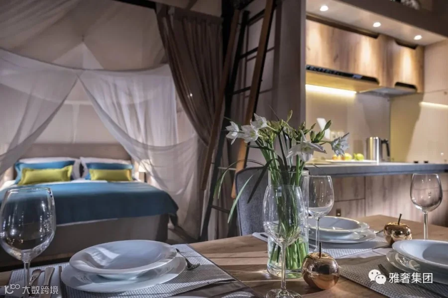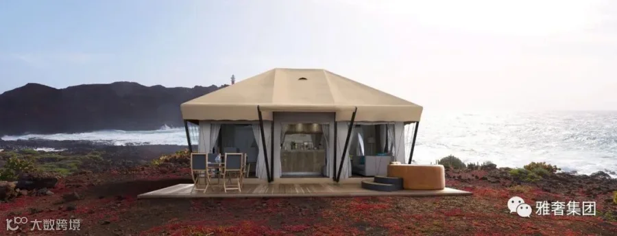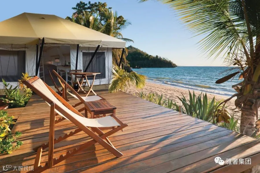 例如海边搭建的酒店帐篷之间分布错落有致,为人们营造出一个类似度假村的氛围。