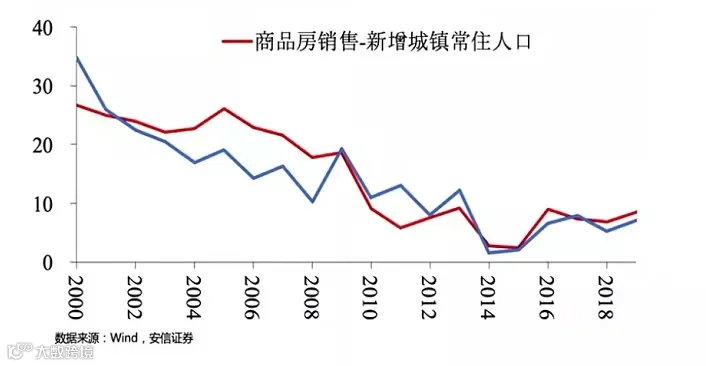 由于现有城市居民的住房渗透率已经饱和,住房的需求就完全来自于新进入城市的居民,新进入城市的居民的数量是增长的,对住房的需求就是增长的,如果新进入城市居民所需要的住房渗透率大体稳定,住房需求的终极的增长将会等于新进入城市居民数量的增长。