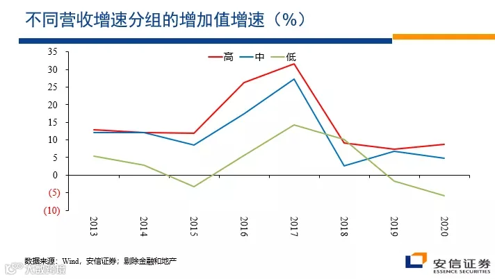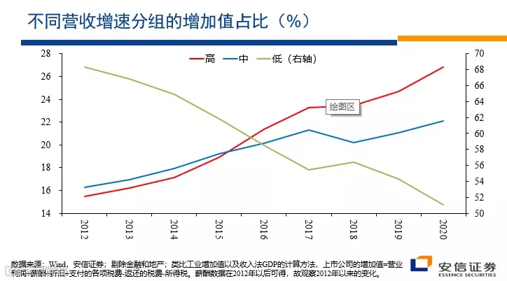 特别是我们把这一增速转化为占比数据以后,高增长组的占比在快速上升,从大概15%上升到了25%以上,而低增长组从70%下降到50%。