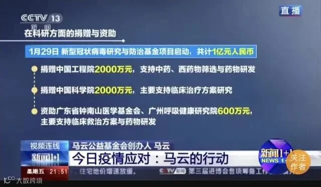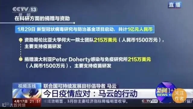 资助一亿元人民币科研资金;提供超过一亿件防疫物资,帮助150个国家、地区和国际机构......疫情发生后,马云公益基金会联合阿里巴巴公益基金会正在发挥着怎样的作用?昨晚央视新闻频道《新闻1+1》,主持人白岩松对话马云!