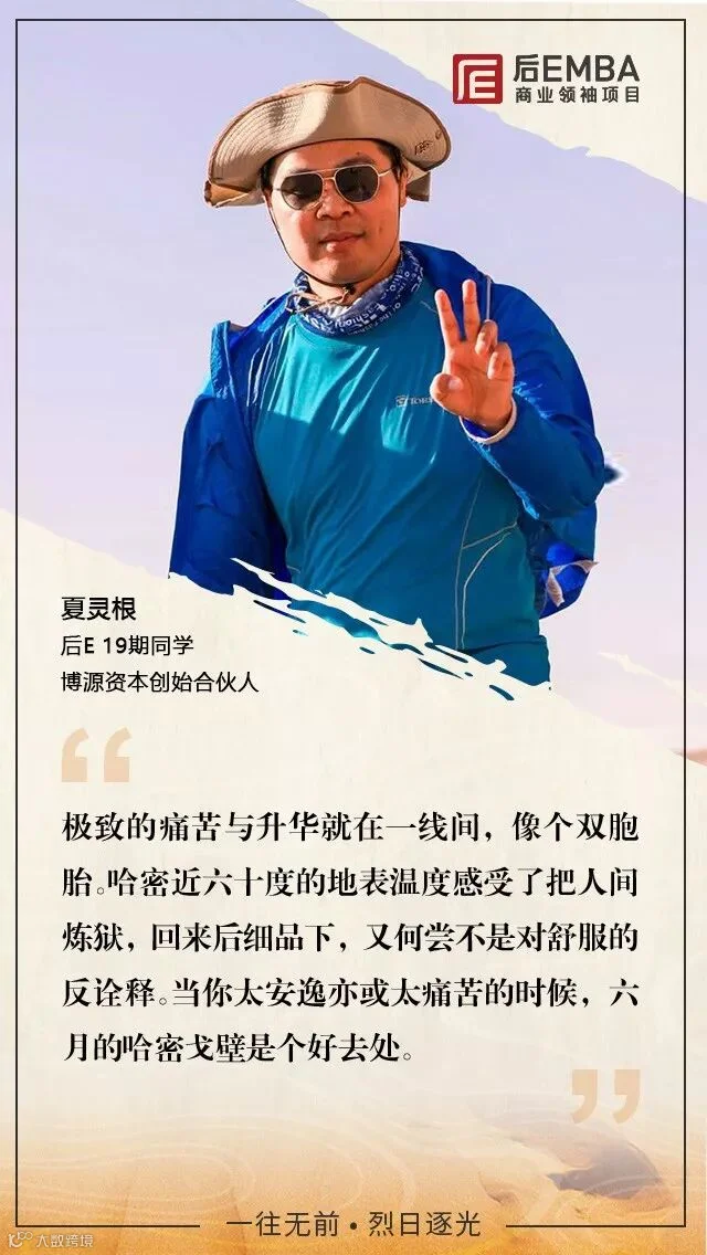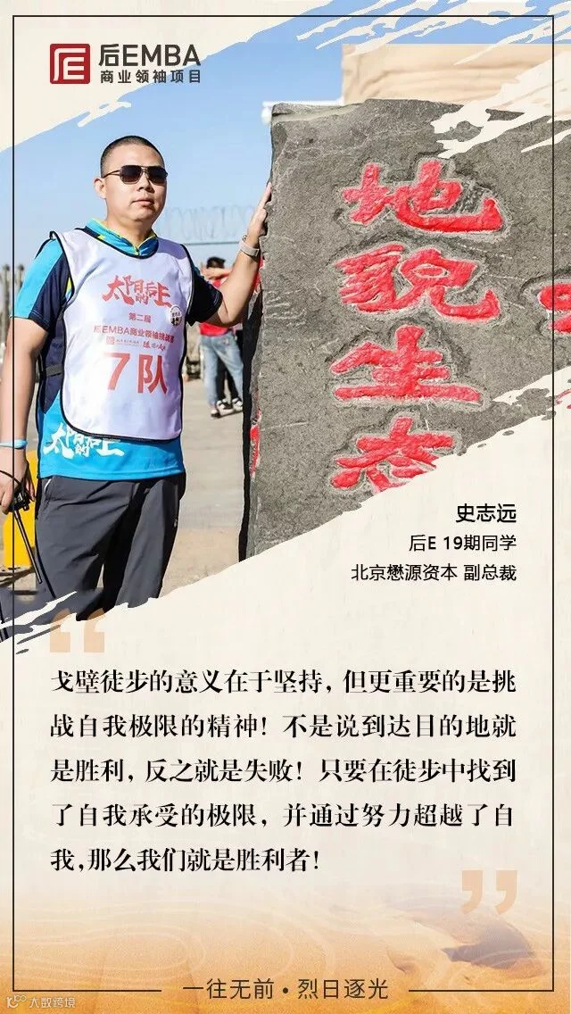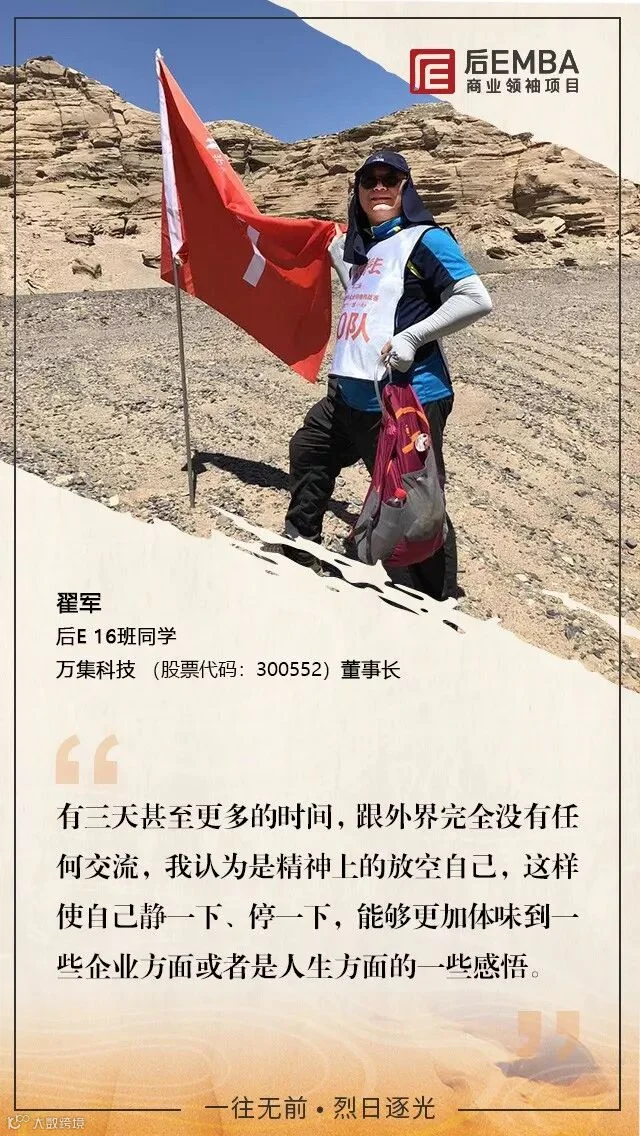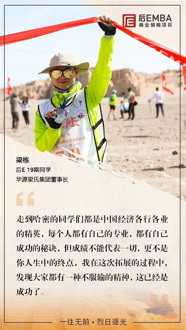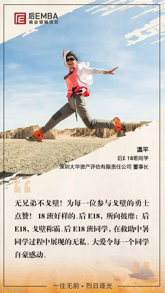 2018年6月16日晚,第二届后EMBA商业领袖挑战赛落下帷幕,数百位后E企业家参与其中,徒步穿越戈壁无人区。