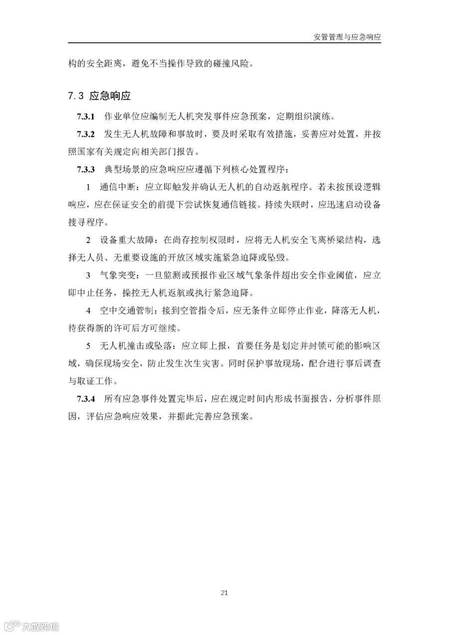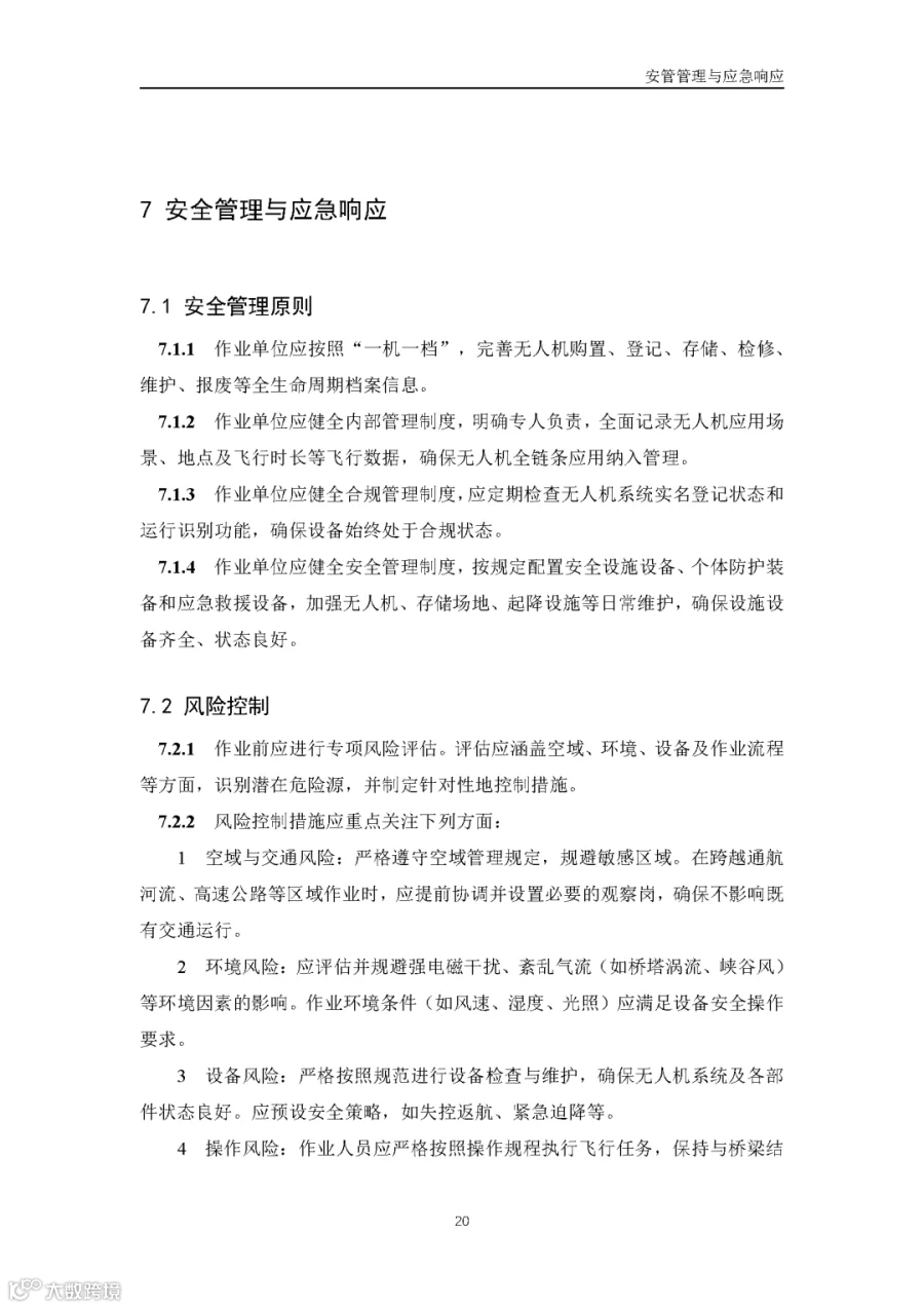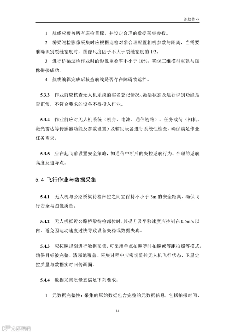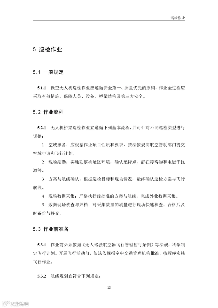 据通航圈了解,这部《低空无人机应用公路桥梁巡检技术指南(试行)》适用于各类型公路桥梁的低空无人机巡检,包括日常巡查、经常检查、定期检查和特殊检查。《指南》指出,无人机巡检是人工巡检的有效辅助与补充手段,主要应用于人工巡检难以实施或更具优势的场景,并与现有公路桥梁管养体系协同融合。 《指南》鼓励各地结合实际情况建设无人机巡检平台,推进数据共享共建,提升监管效能。