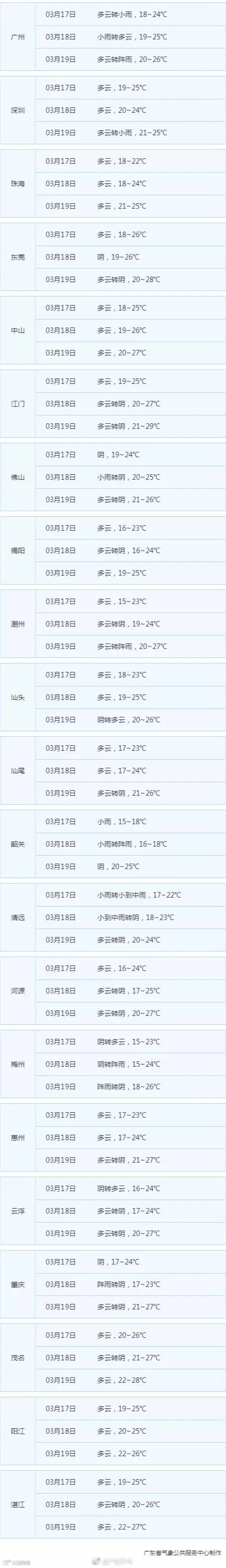 最后送上广东天气预报: