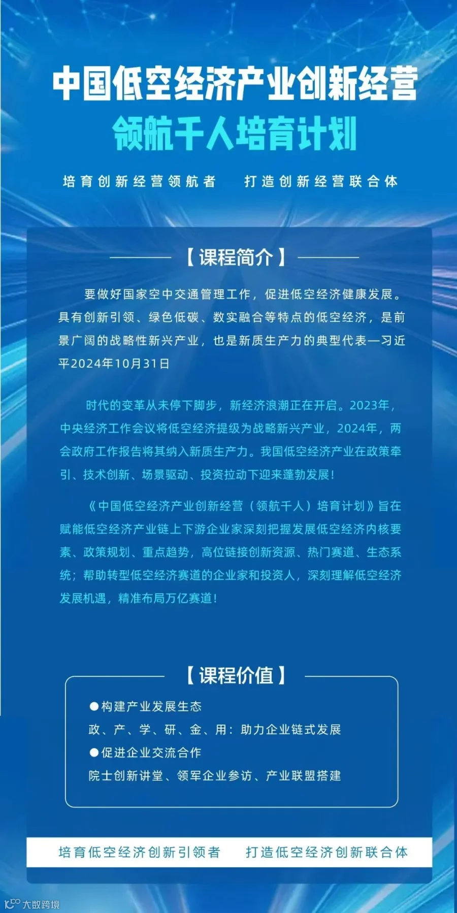 欢迎加入:中国低空经济产业创新经营领航千人培育计划