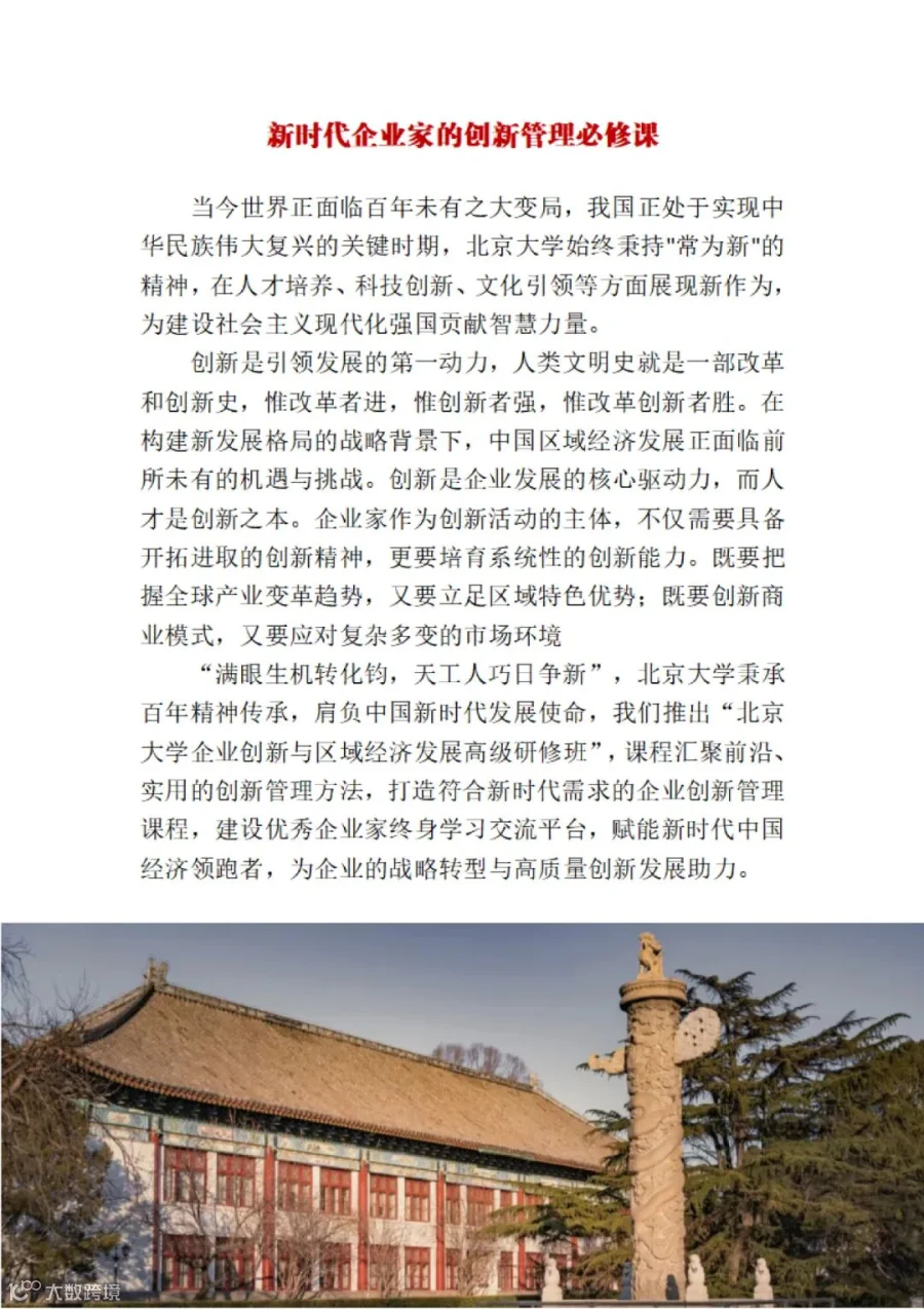 欢迎加入:北京大学企业创新与区域经济发展高级研修班(四期)