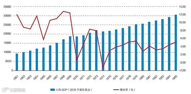 图13 日本1961—1985年经济增长率及人均GDP