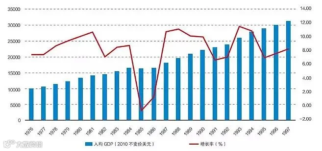 图15 新加坡1976—1997年经济增长率及人均GDP