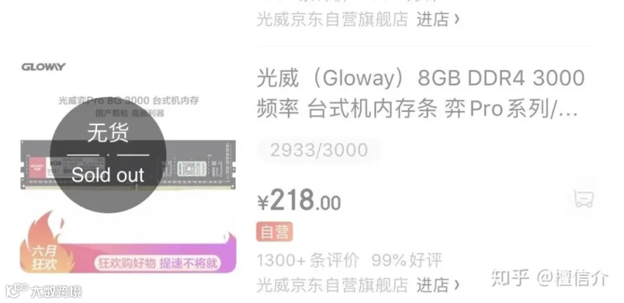 有网友这么评论:自从光威发布了国产内存,金士顿、三星的工厂突然就不着火了,不发大水了。员工也不罢工了,产能也够了,价格突然就降了,毕竟合肥长鑫给的压力不小,光威弈Pro正式上市,首个纯国产DDR4内存条,沸腾了整个科技圈。性能还不错,而且价格具有绝对优势,8G的售价仅仅218元。