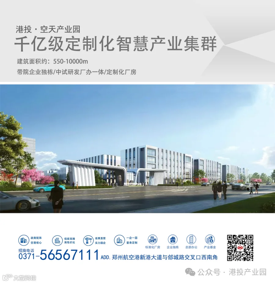 港投·空天产业园位于航空港区新港大道与明星路西北角,占地359亩,规划建筑面积40余万平方米,计划总投资19亿元。一期项目已于2020年建成投用,投资额4.5亿元,建筑面积5.3万平方米,目前已入驻超聚变数字技术和豫信电科等行业龙头企业,年产值约180亿元。园区待开发土地约310亩,其中,二期项目占地123亩,规划建设面积约10.5万平方米,拟建设20栋高标准厂房及相关配套。园区聚焦航空航天和高端制造业产业,以客户需求为导向,努力打造品质高、性价比高、服务水平高的现代科技产业园。目前,二期项目已启动招商工作。