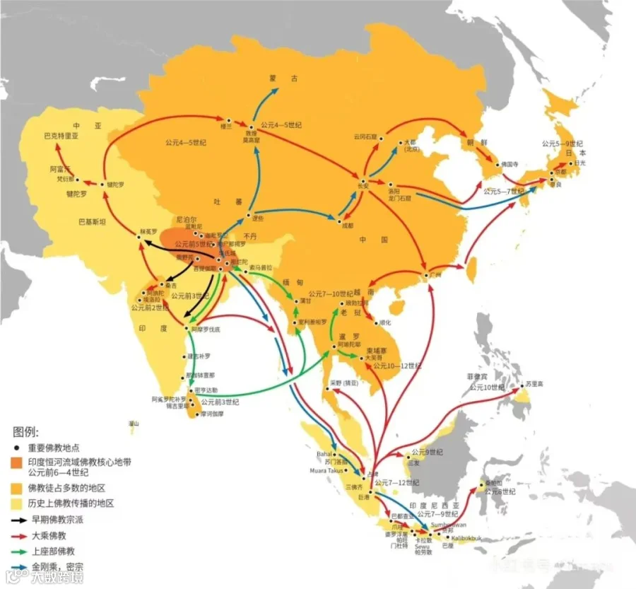 佛教发源于两千多年前的古印度,在因缘的变化流转中,有部派佛教的分裂、大乘佛教的开展,有与各个不同民族文化结合后所呈现出的特色。这不仅只是一个宗教的发展过程,它真正的意义在于这是人类文化、思想史上的里程碑。