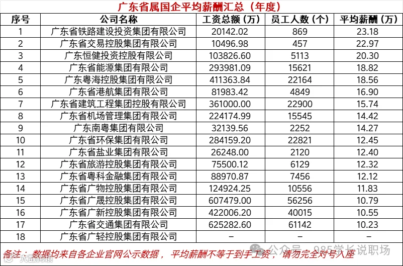 平均薪资最高的是广东铁路建设投资集团23.18万,其次是广东省交易控股集团有限公司22.97万,广东恒健投资控股有限公司排在第3位(年度薪酬20.3万)。这三家广东省属国企平均薪资都超过了20万 -