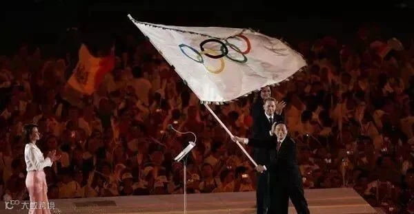2004年8月30日,王岐山在雅典奥运会闭幕式上接过奥运会会旗。