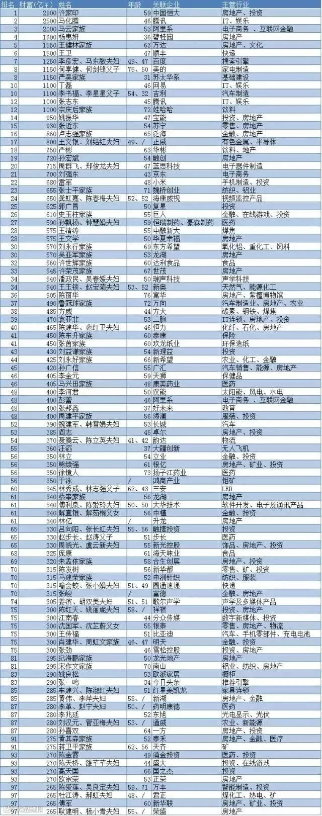 · 附:2017胡润百富榜完整名单