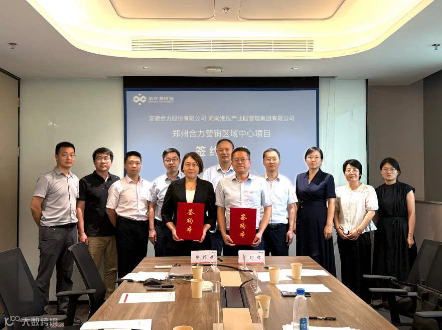 7 月 17 日上午,合力新能源叉车组装及河南区域零配件仓储中心项目合作签约仪式在航空港区兴港大厦A塔隆重举行。安徽合力股份有限公司与港投产业园集团正式签约达成合作,标志着两家省属国企的强强联合,将进一步推动中部地区物流装备产业链资源、新能源叉车再制造资源、仓储物流产业的集聚发展。