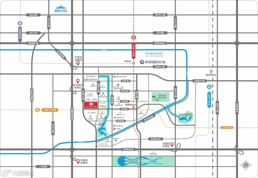 项目交通极其便利,3分钟可直达航空港区站高速口,10分钟可到达机场、双鹤湖、园博园高速口,项目东侧有17号线地铁口,在机场可换乘2号线或城际铁路直达市区,向南可到达许昌市,20分钟可直达市区高铁站。