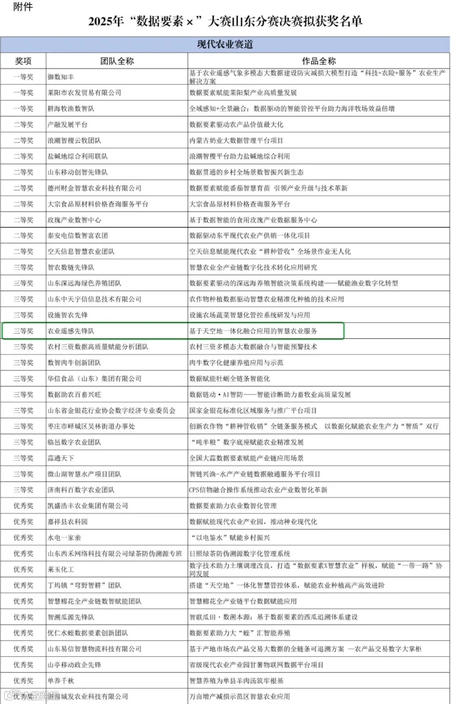 导读:喜报!济南卫星荣获2025年“数据要素×”大赛山东分赛“现代农业赛道”三等奖